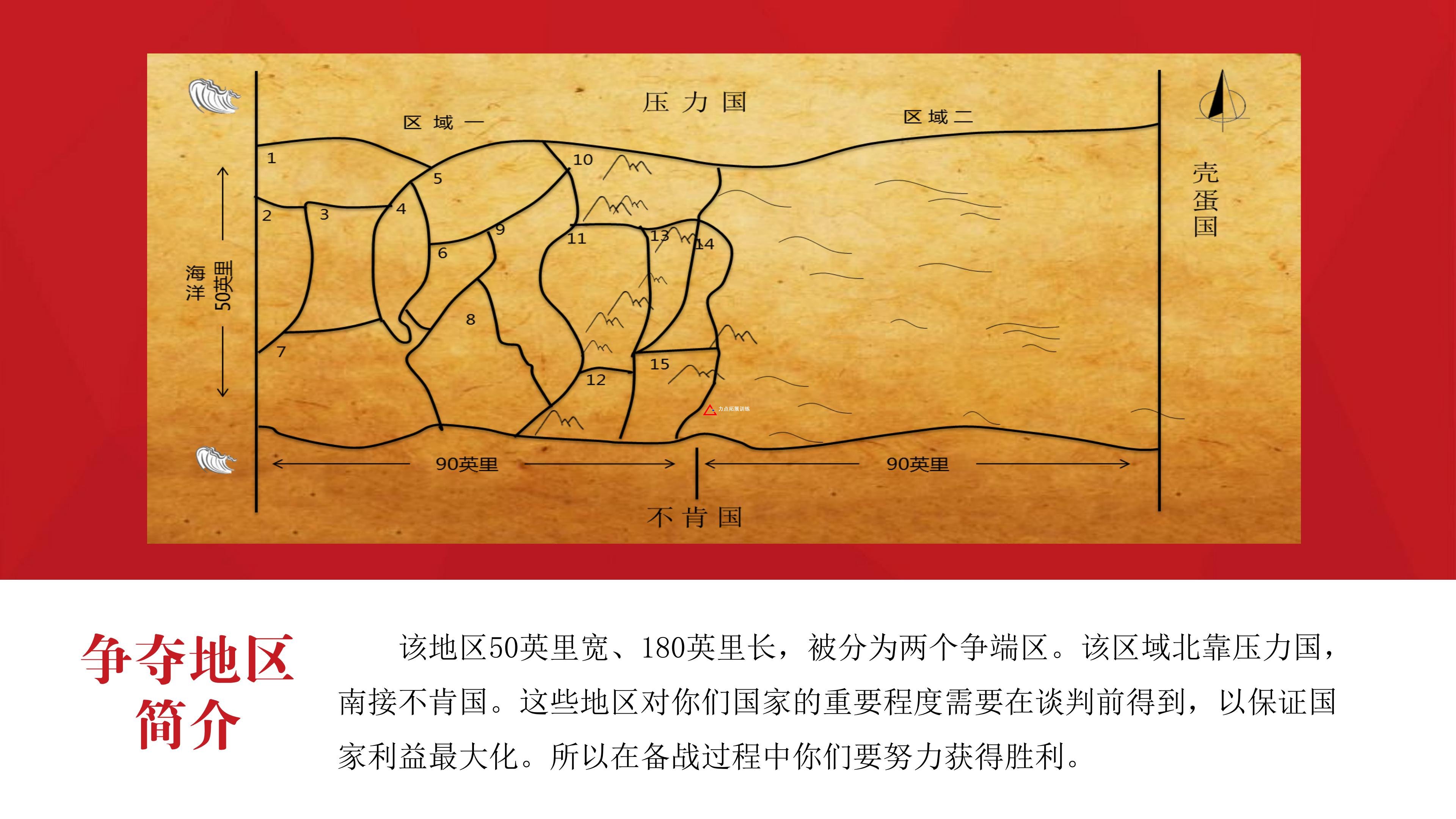 壓力國和不肯國之間存在著沒有解決的國界之爭, 這種狀況引起了政治、經(jīng)濟(jì)和文化方面持續(xù)的紛爭?,F(xiàn)在兩個國家將進(jìn)行最后一次談判。