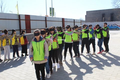兩隊(duì)派出參賽隊(duì)員代表,蒙上眼睛采用充氣大錘互相攻擊對方,過程中所有人不能說話。最先被擊中的隊(duì)員淘汰。 拓展游戲盲俠舞劍 拓展項(xiàng)目盲俠舞劍 盲...